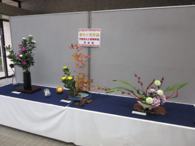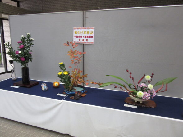 栃木県立宇都宮女子高等学校の華道部の皆さんによる菊を使用した生け花を展示しております。