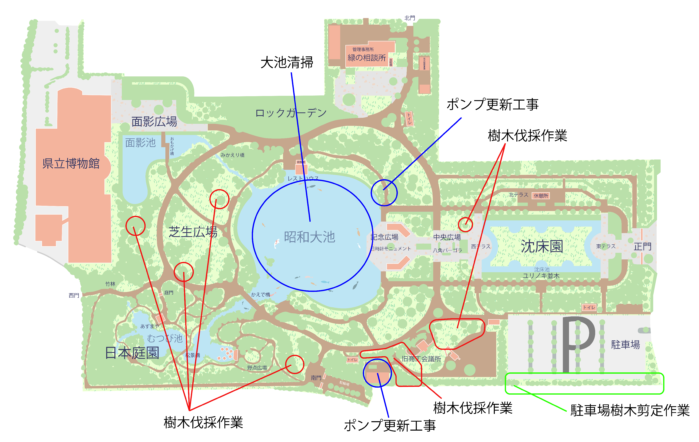 工事、伐採作業、剪定作業、清掃作業等が予定されてます。