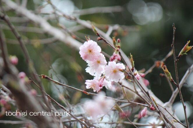 同じくサクラ’下野乙女’日本庭園にて開花しております。